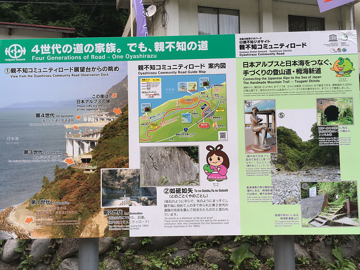 親不知で初めて人の手で作られた第2世代の道路の完成を喜んで刻まれたものだと言われています。そりゃそうだ、納得。