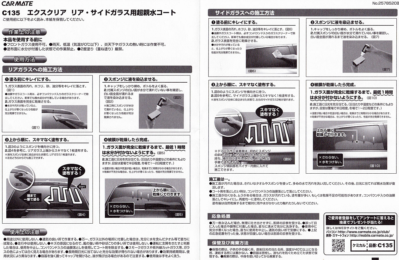 XCLEAR リア/サイドガラス用 超親水コートしてみた