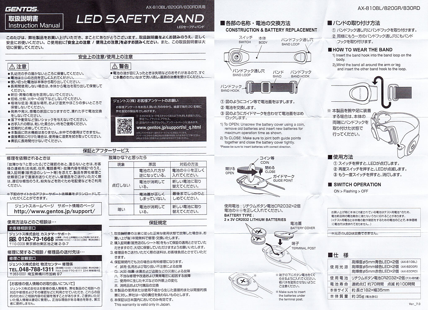 GENTOS ジェントス LED セーフティバンド AX-820GR(Amazon)