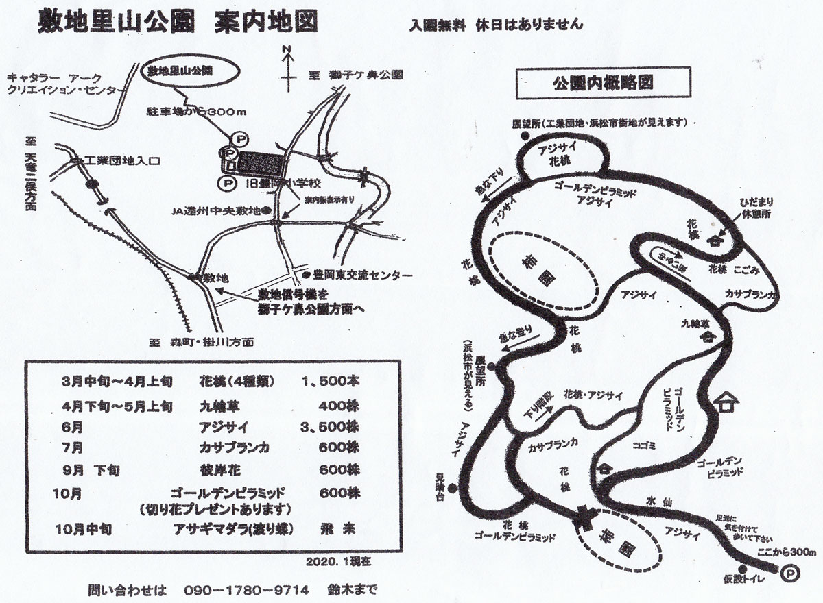 敷地里山公園をGoogleマップするとこんな風に案内されますが、駐車場も道もないので、里山 散策公園の駐車場にクルマを停めて上がって行くのが正解!