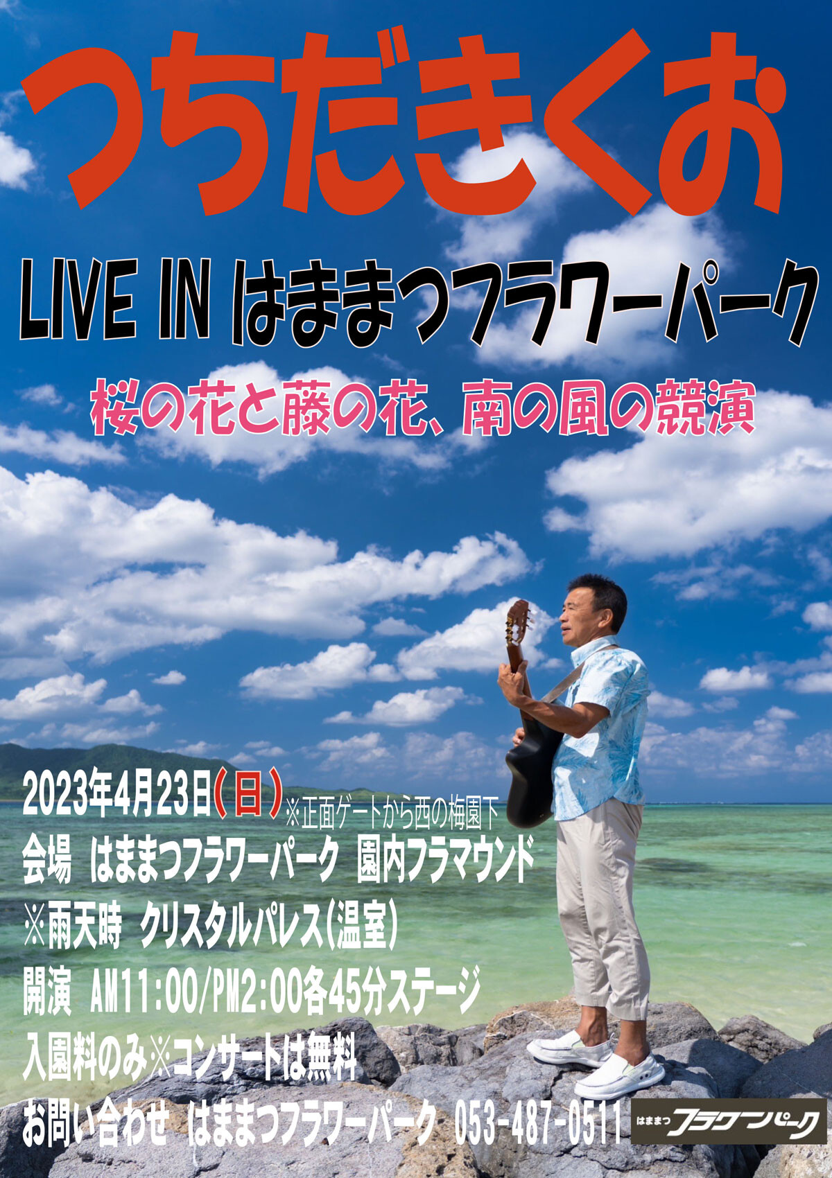今月4/23日曜に浜松市フラワーパークで開催されるライブは入園料1,000円だけで観ることができます♪