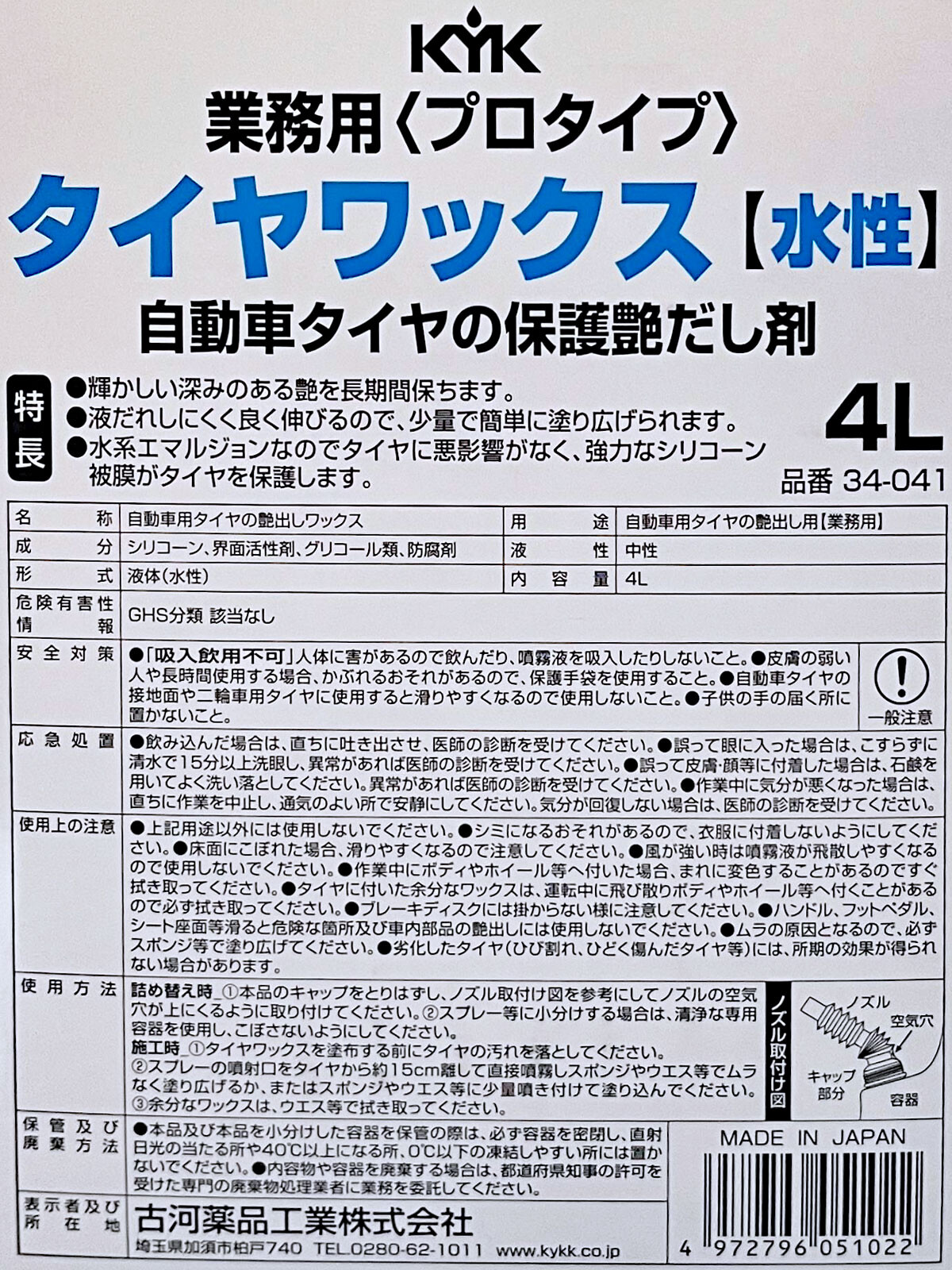 タイヤワックスに付属したスプレーは純水に使い、以前使ってたタイヤワックスのスプレーをキレイにして使うことししました。