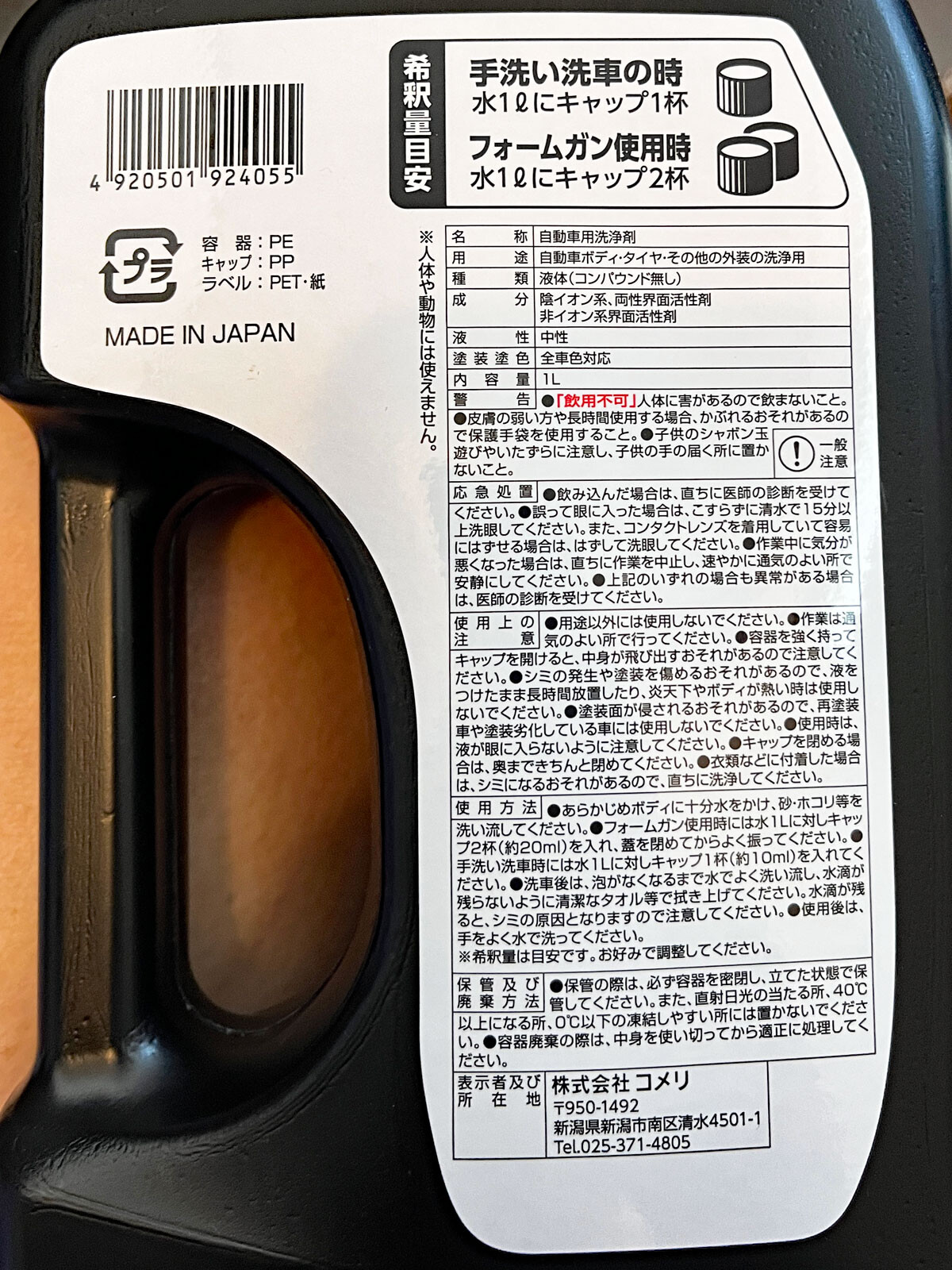 泡洗車用シャンプーを原液のまま使ってみましたが、こんなもんか