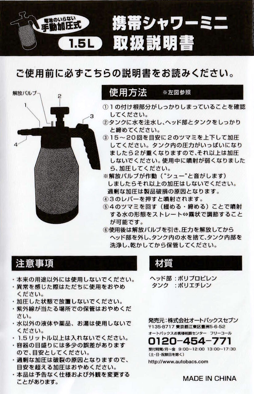 - AUTOBACS > 携帯シャワーミニ 1.5L