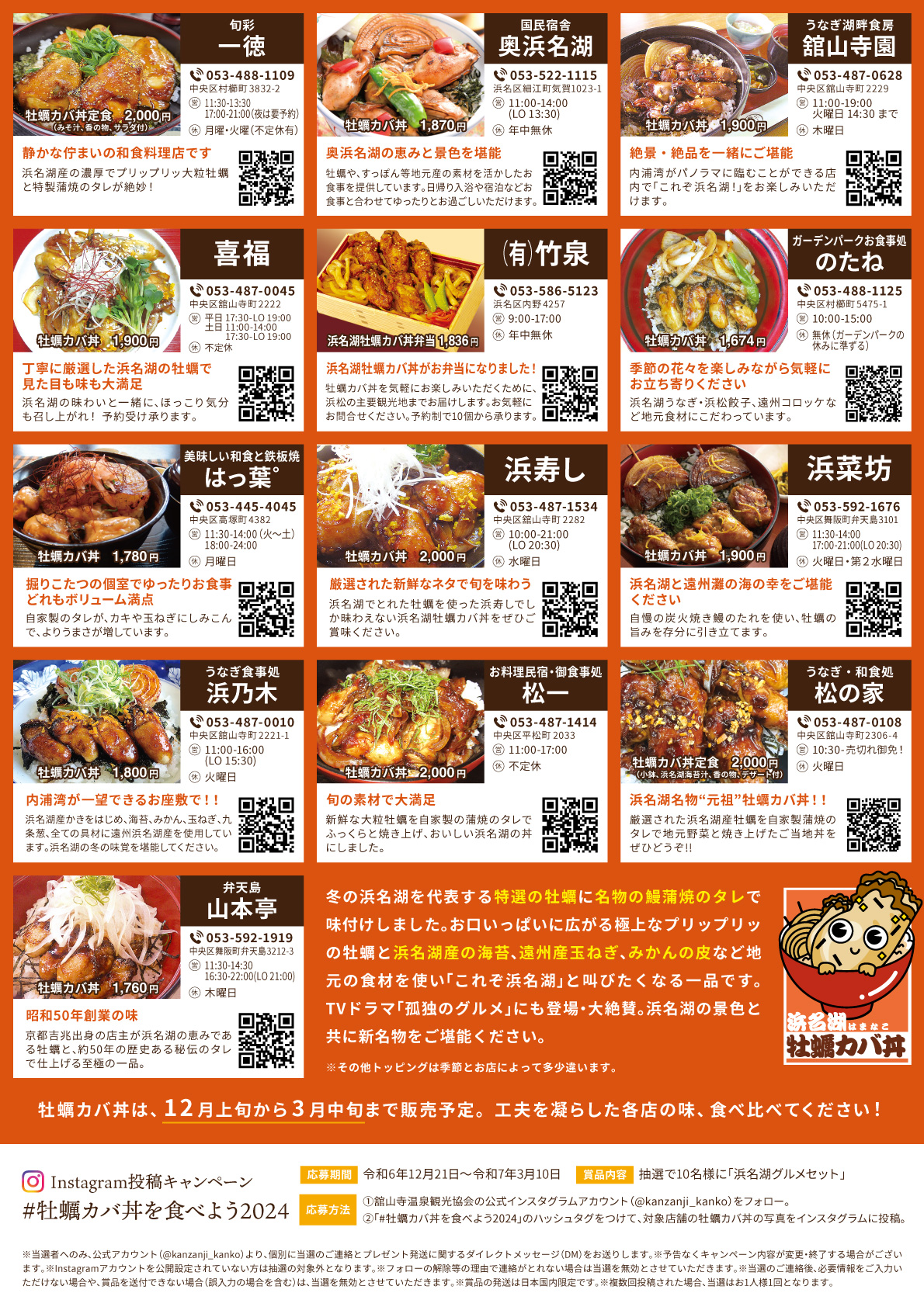 - 舘山寺門前通り > 2024年度牡蠣カバ丼情報(ポスター / 飲食店一覧)