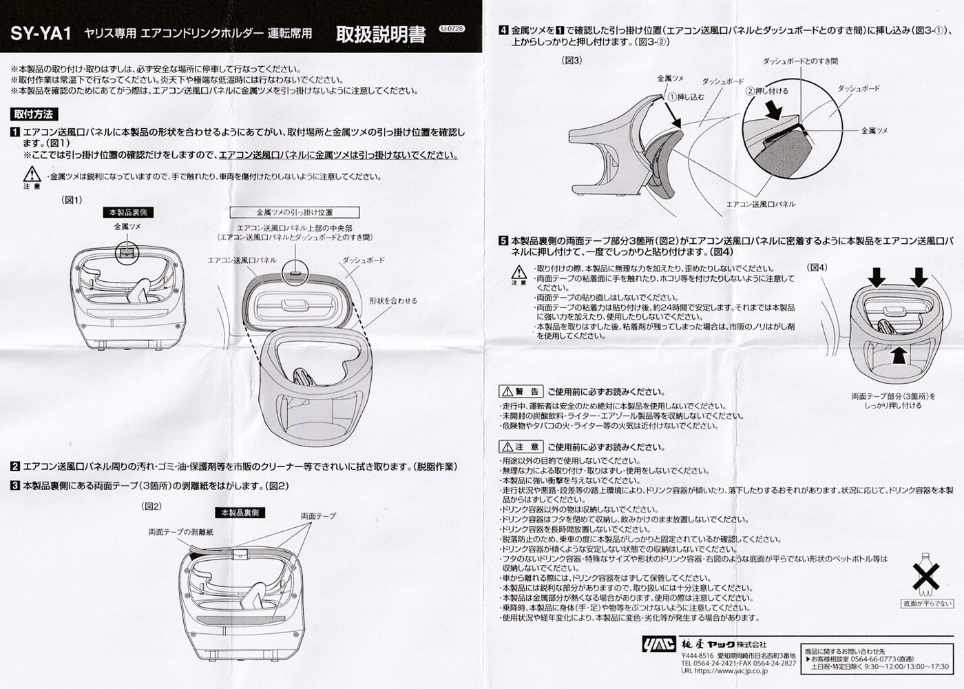 - 槌屋ヤック > ヤリス専用 エアコンドリンクホルダー 運転席用 SY-YA1 / 助手席用 SY-YA2