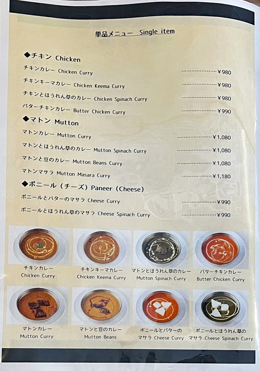 - 単品メニュー チキン / マトン / ポニール(チーズ) ランチ&ディナー