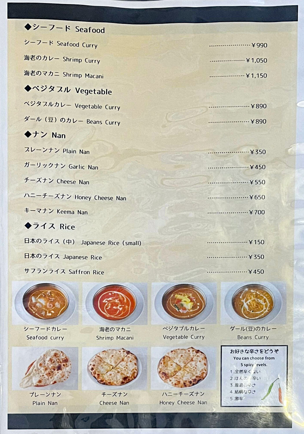 - 単品メニュー シーフード / ベジタブル / ナン / ライス ランチ&ディナー