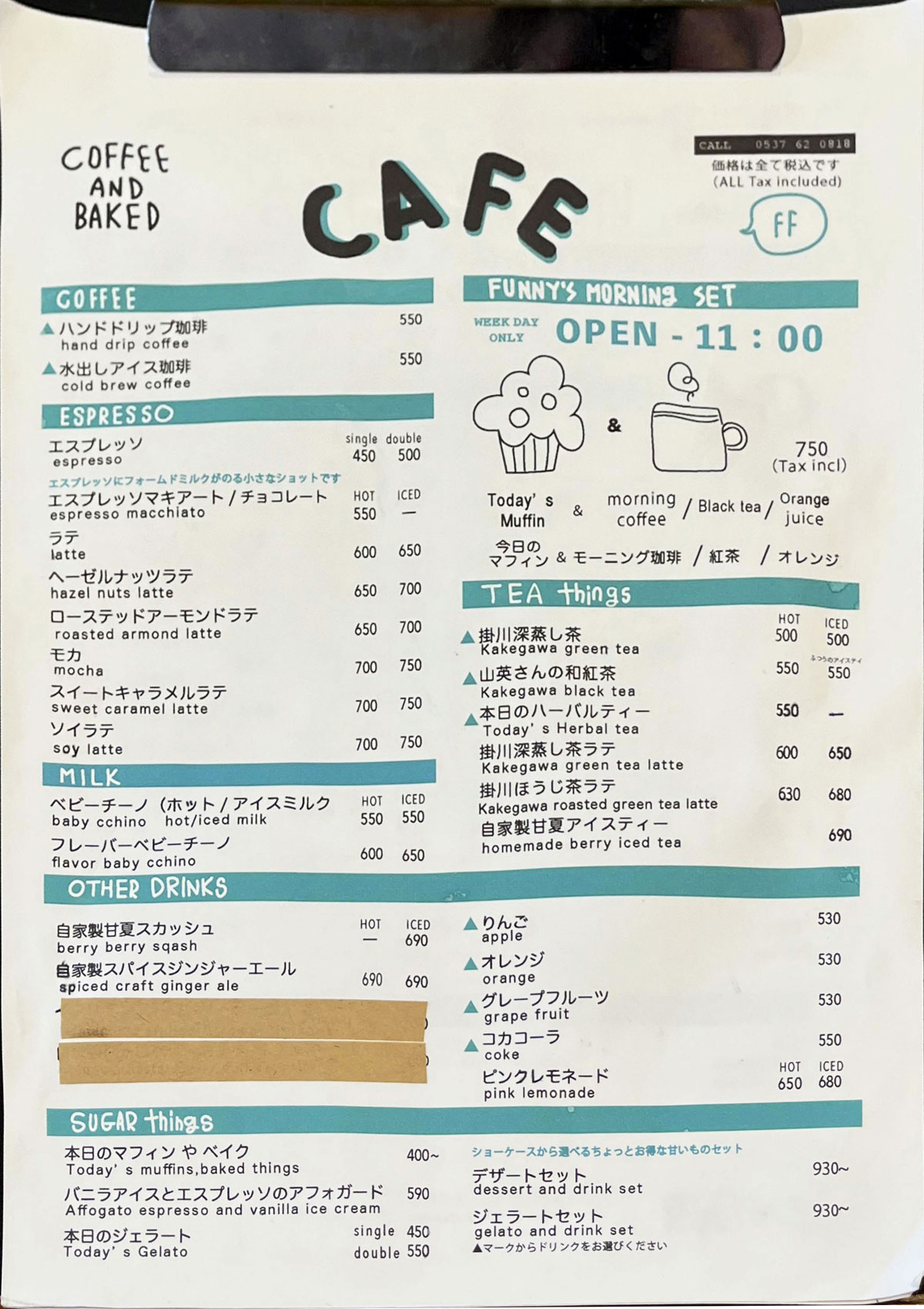 - カフェメニュー 〜11:00