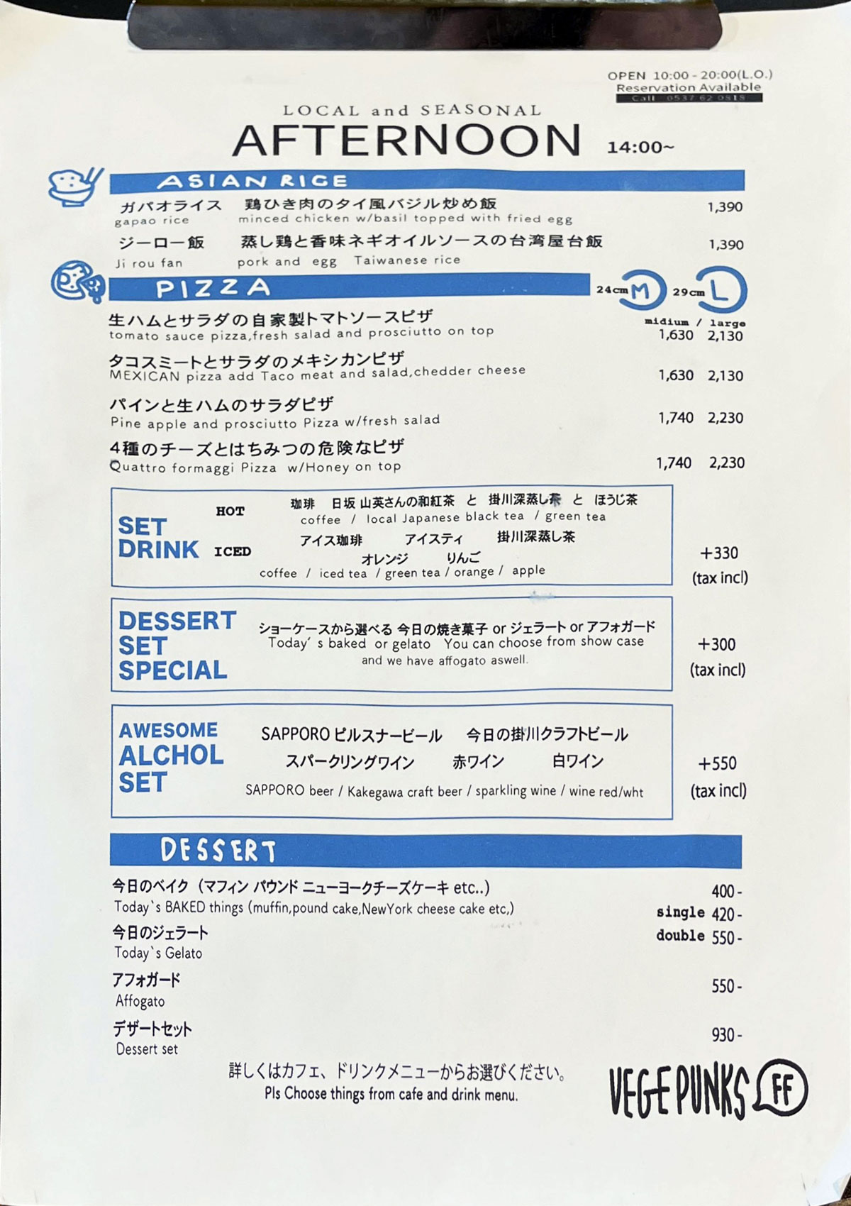 - アフタヌーンメニュー 〜14:00