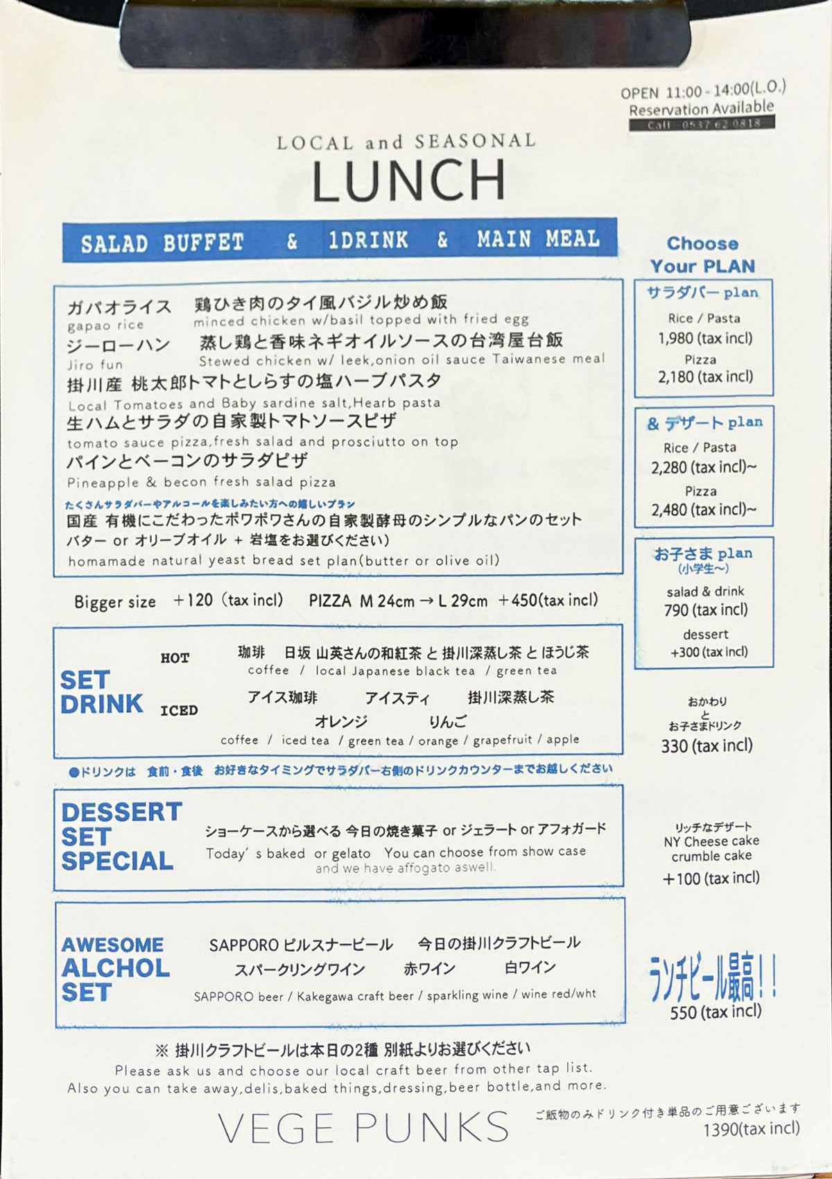 - ランチメニュー 11:00〜14:00