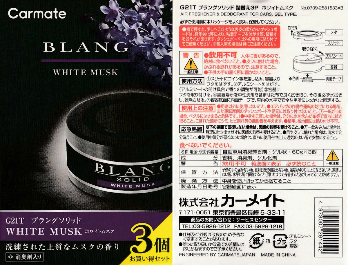 カーメイト 車用消臭芳香剤 ブラング 60g×3個 ホワイトムスク / アフターシャワー(Amazon)